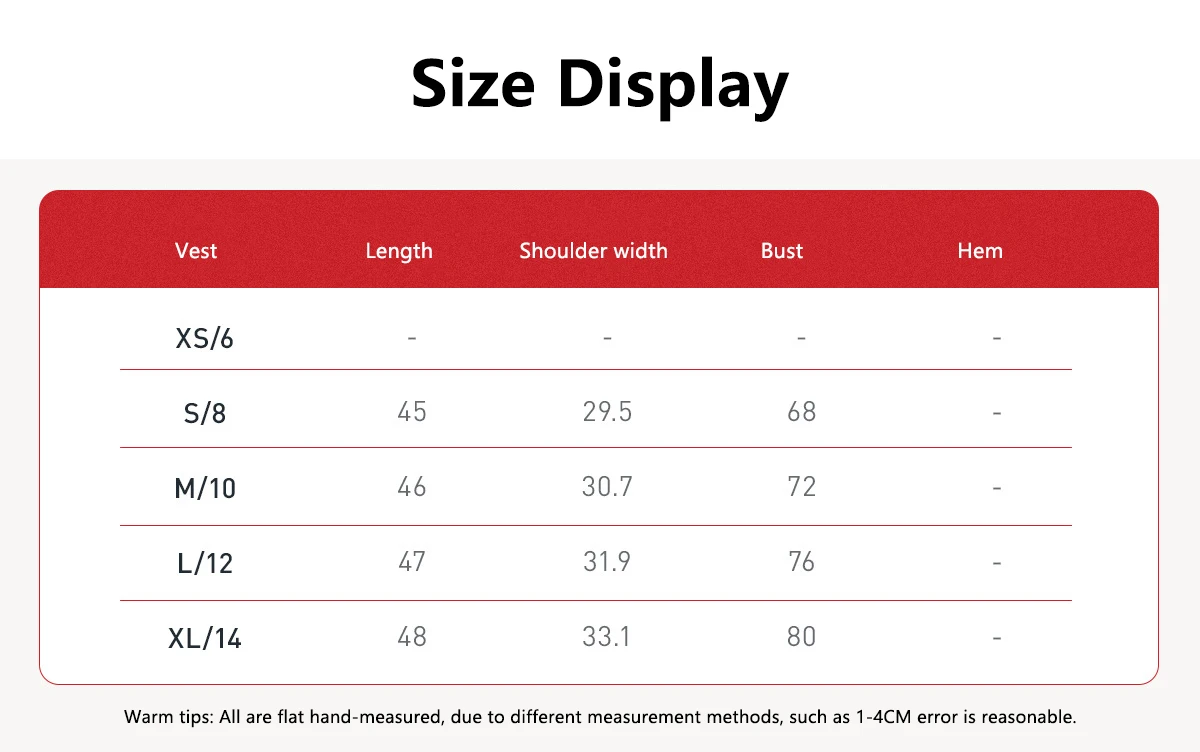 1. Please allow 1-3cm measuring deviation due to manual measurement.